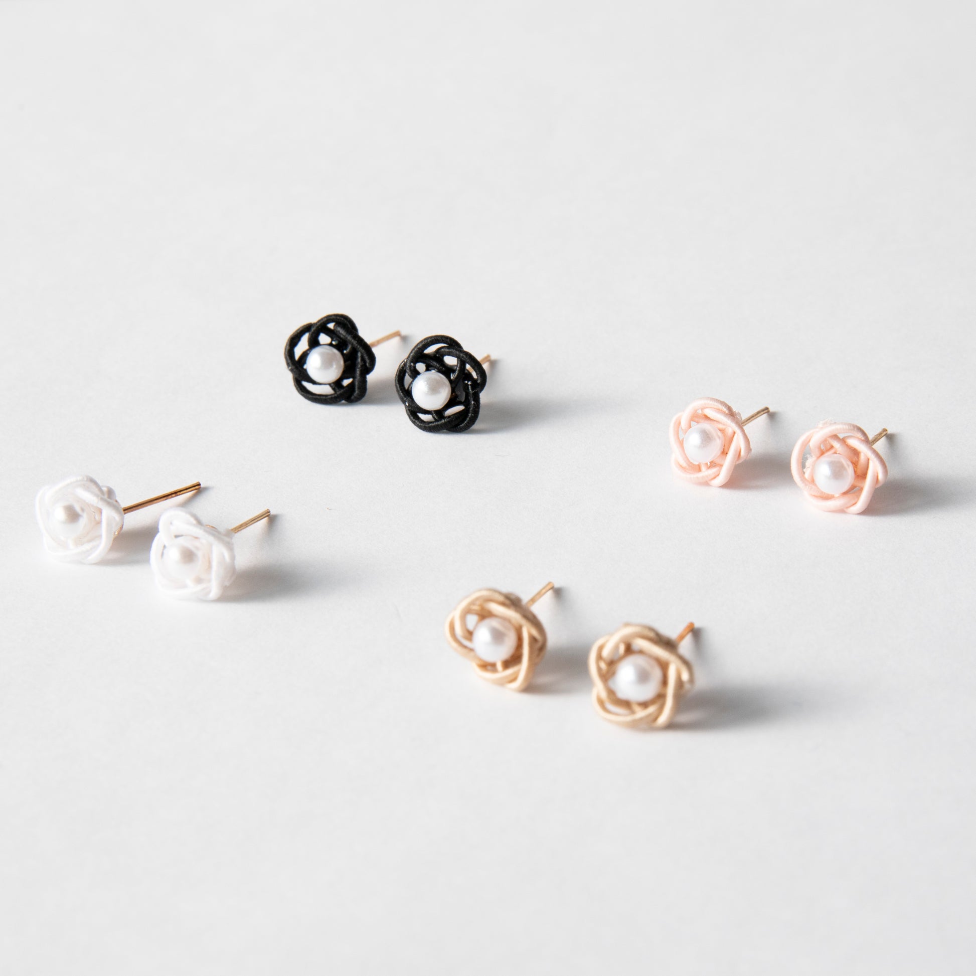 中央でそっと光るパールビーズが、上品さをほんのり添えながら、顔まわりを柔らかく華やかに見せてくれます。小ぶりで軽やかなサイズ感は、日常の装いに馴染みつつ、特別なシーンでも控えめに美しさを引き立てる存在。