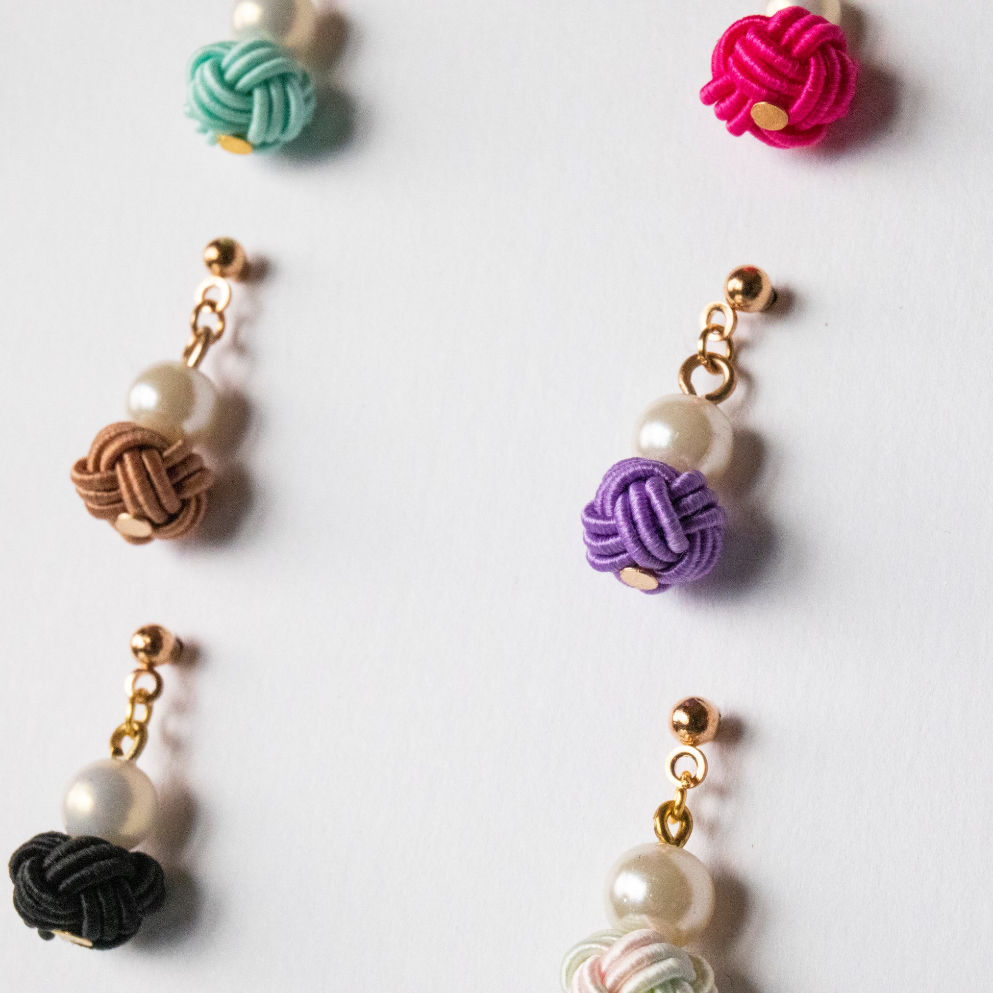 水引で小さな雪だるまを表現した、冬限定の耳飾りです。