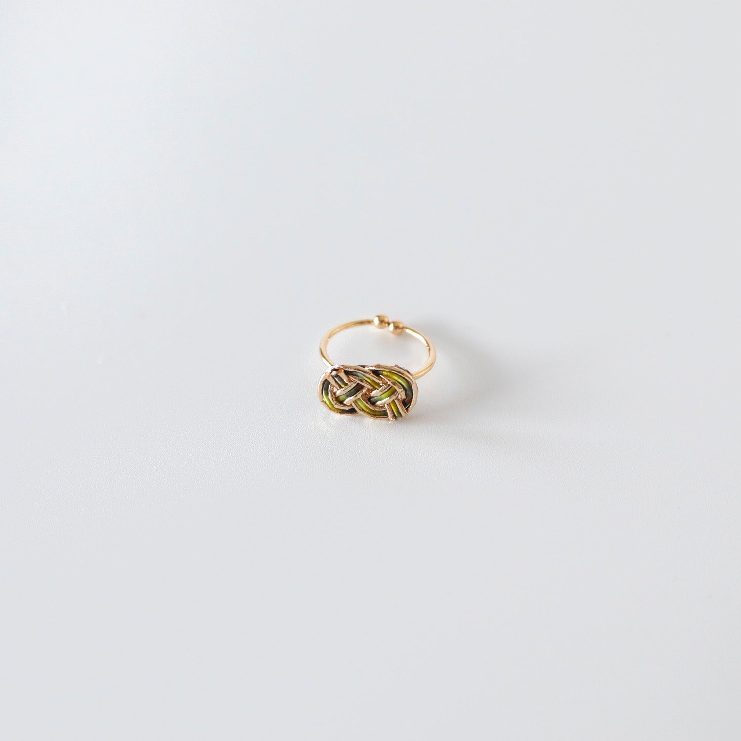 抱き合わじ結びの指輪です。日常使いもしやすく・和服&和装にも合わせやすくできることを考え、シンプルに仕立てました。リングの部分が調整可能な為、どの指にもお付け頂けるようになっています。
