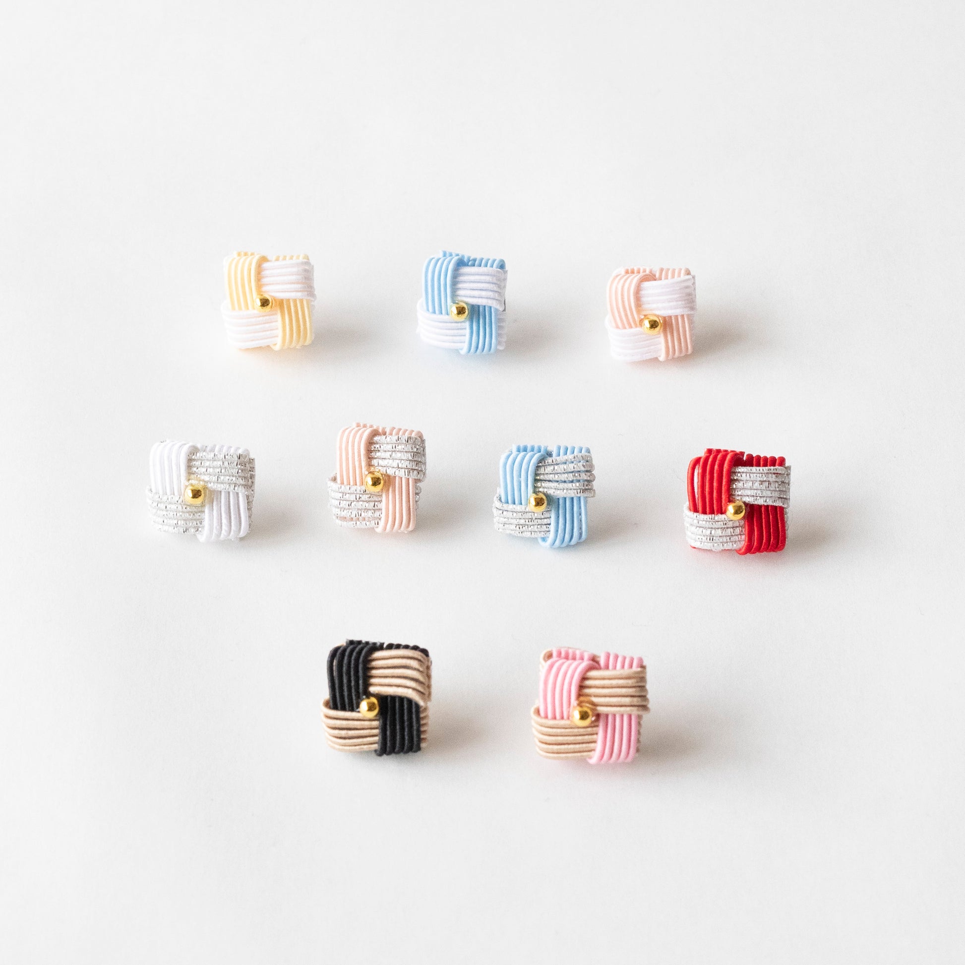 伝統的な水引をモダンにアレンジした、シンプルながらも存在感のあるピンバッジです。それぞれ異なる色の組み合わせが、さりげなく個性を引き立ててくれます。帽子やバッグ、ジャケットやシャツの襟元にそっと添えて、和のアクセントをお楽しみください。