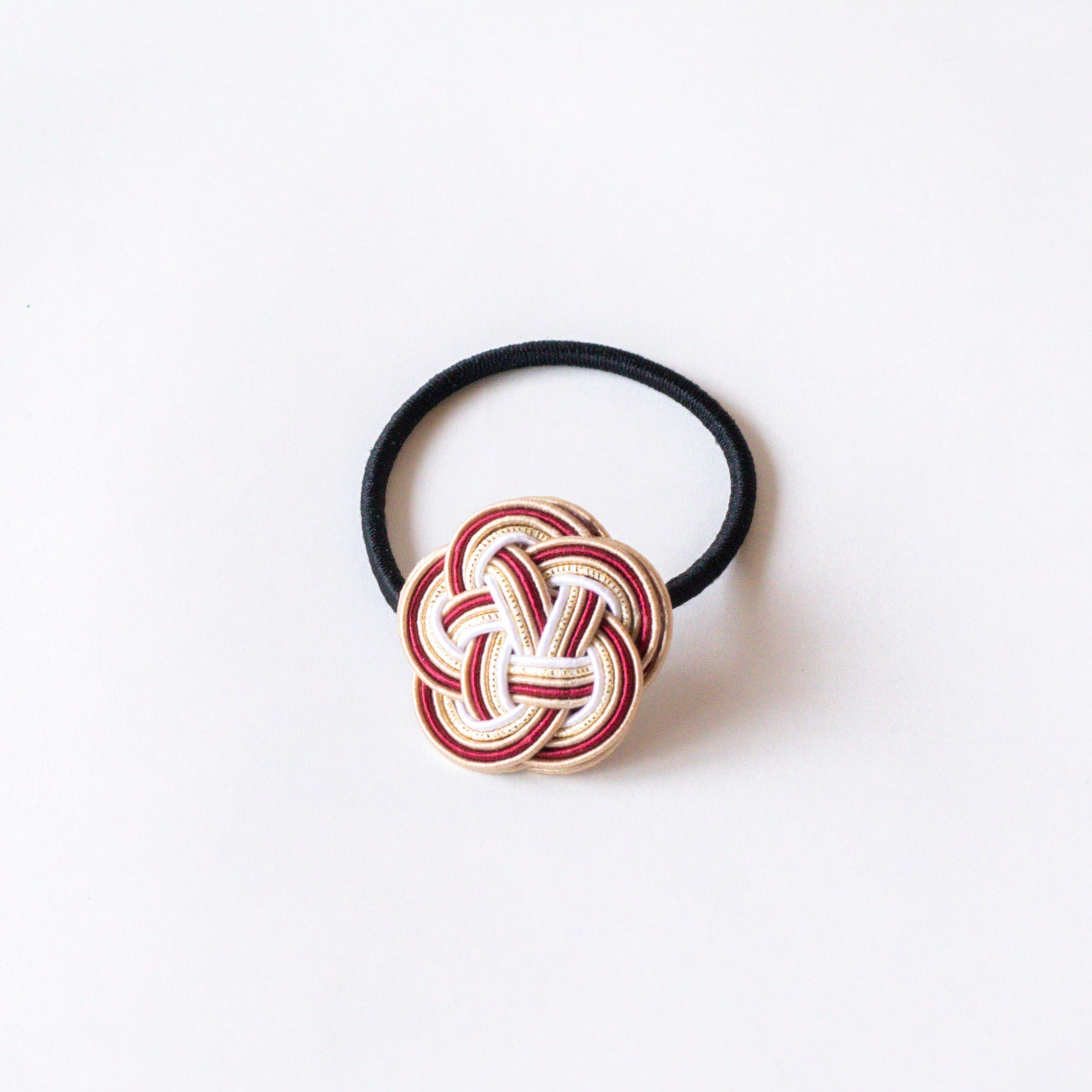 モダンなカラーの組み合わせで作った梅結びのヘアゴムです。